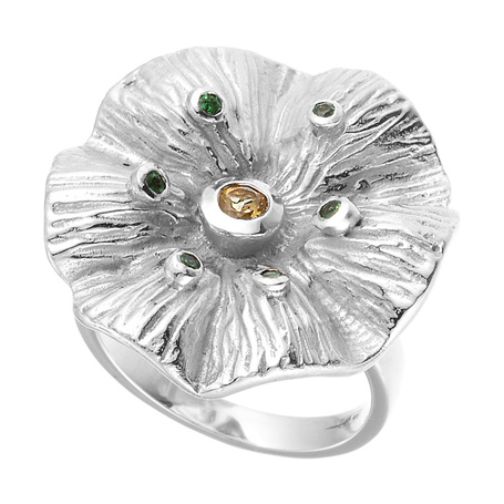 Кольцо из серебра 925 пробы с цитрином и цаворитами