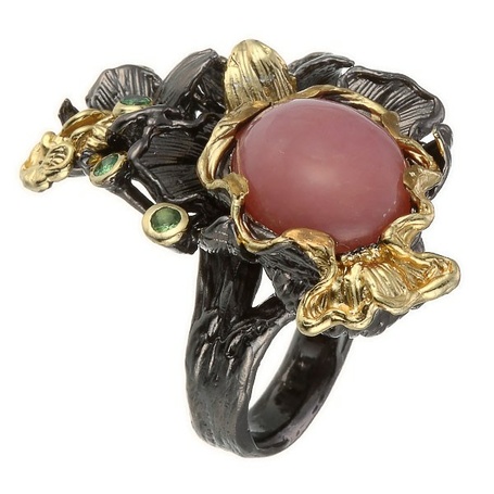Кольцо из серебра 925 пробы с опалом и цаворитами