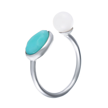 Кольцо из серебра 925 пробы с амазонитами и жадеитом