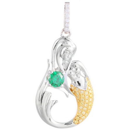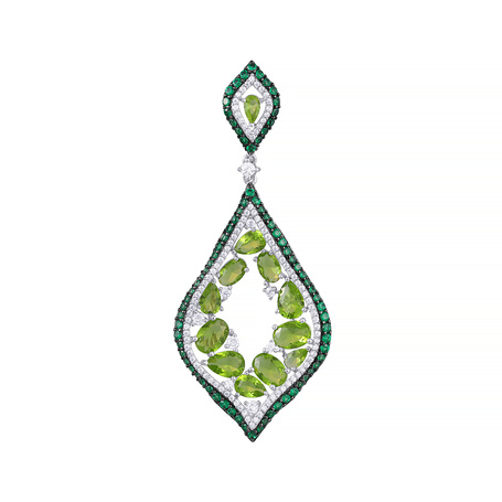 Подвеска из серебра 925 пробы с перидотами синтетическими и фианитами