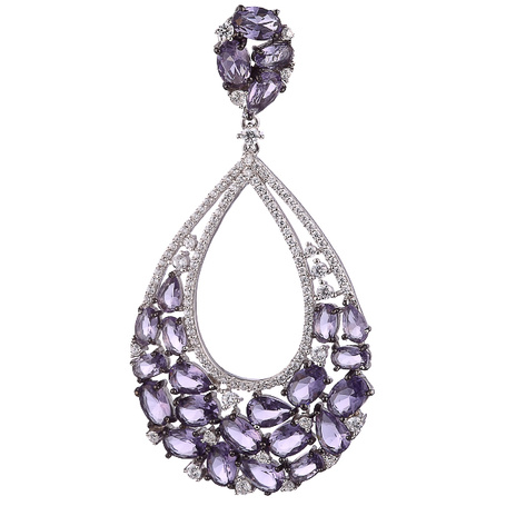 Подвеска из серебра 925 пробы с аметистом, сапфирами и фианитами