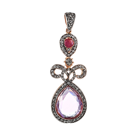 Подвеска из серебра 925 пробы с аметистом, корундом и фианитами