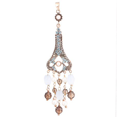 Подвеска из серебра 925 пробы с халцедонами, раухтопазами, жемчугом майорика и фианитами