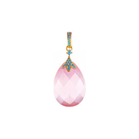 Подвеска из серебра 925 пробы с кошачьим глазом искусственным и фианитами