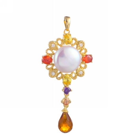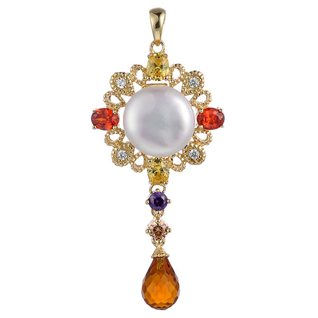 Подвеска из серебра 925 пробы с аметистом, гранатом, цитрином, жемчугом и фианитами