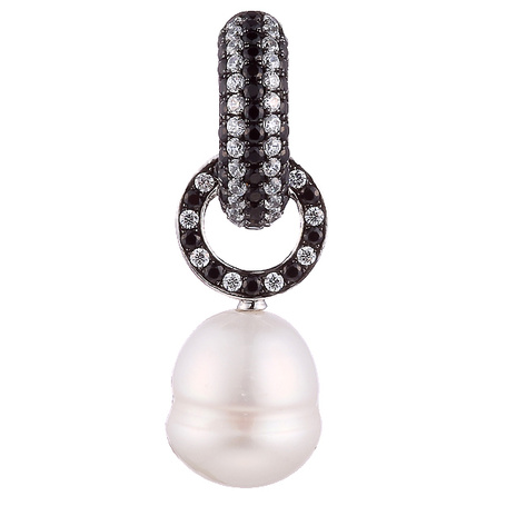 Подвеска из серебра 925 пробы с фианитами и барочным жемчугом