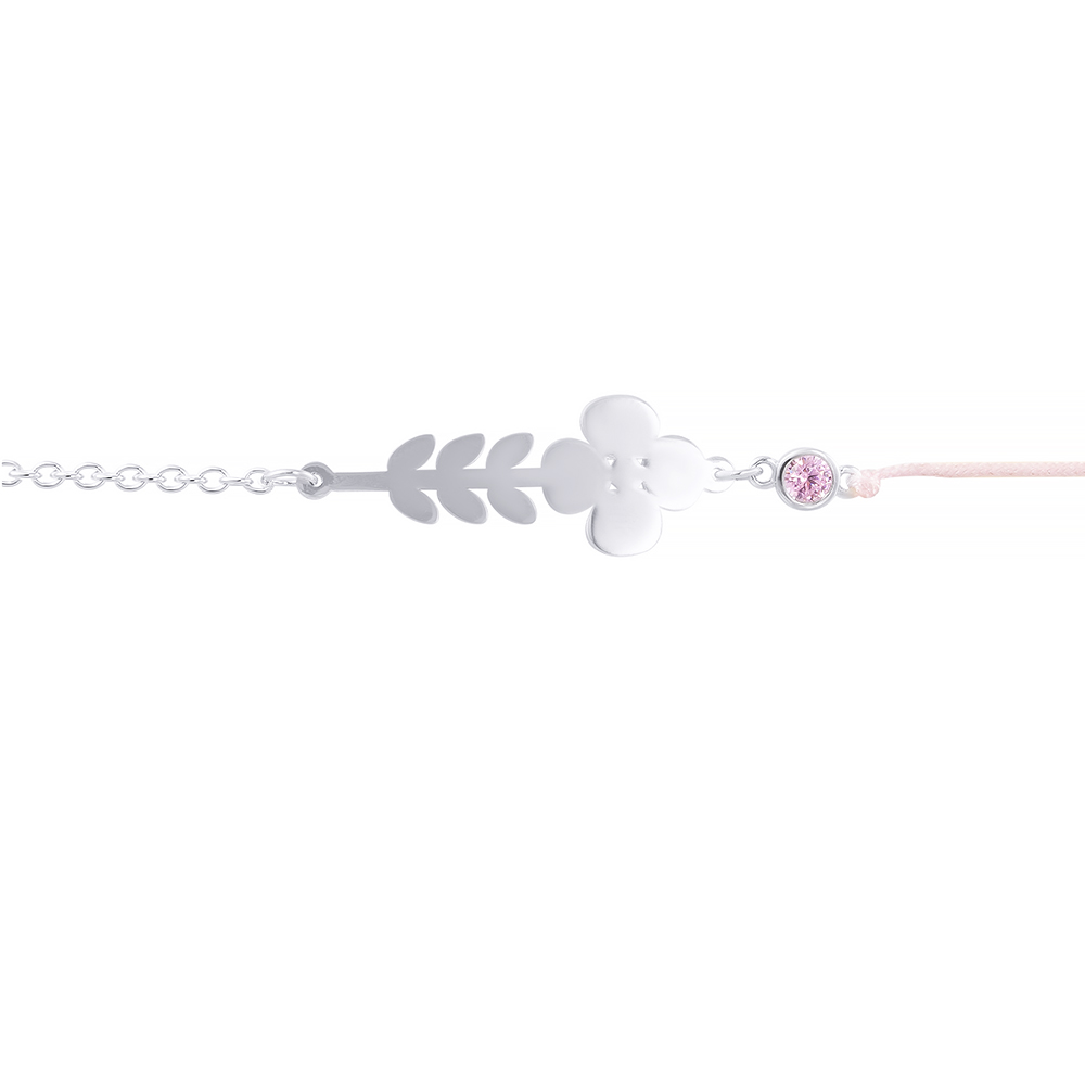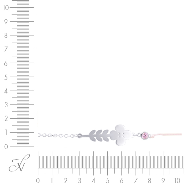 Анклет из серебра 925 пробы с фианитами и текстилем