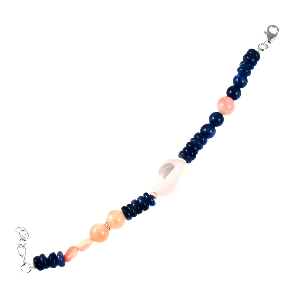 Браслет из серебра 925 пробы с кварцем, опалами и кианитами