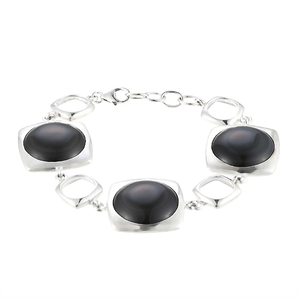 Серебряный браслет 925 пробы, камни - обсидиан - 3шт. вес 52.50 карата