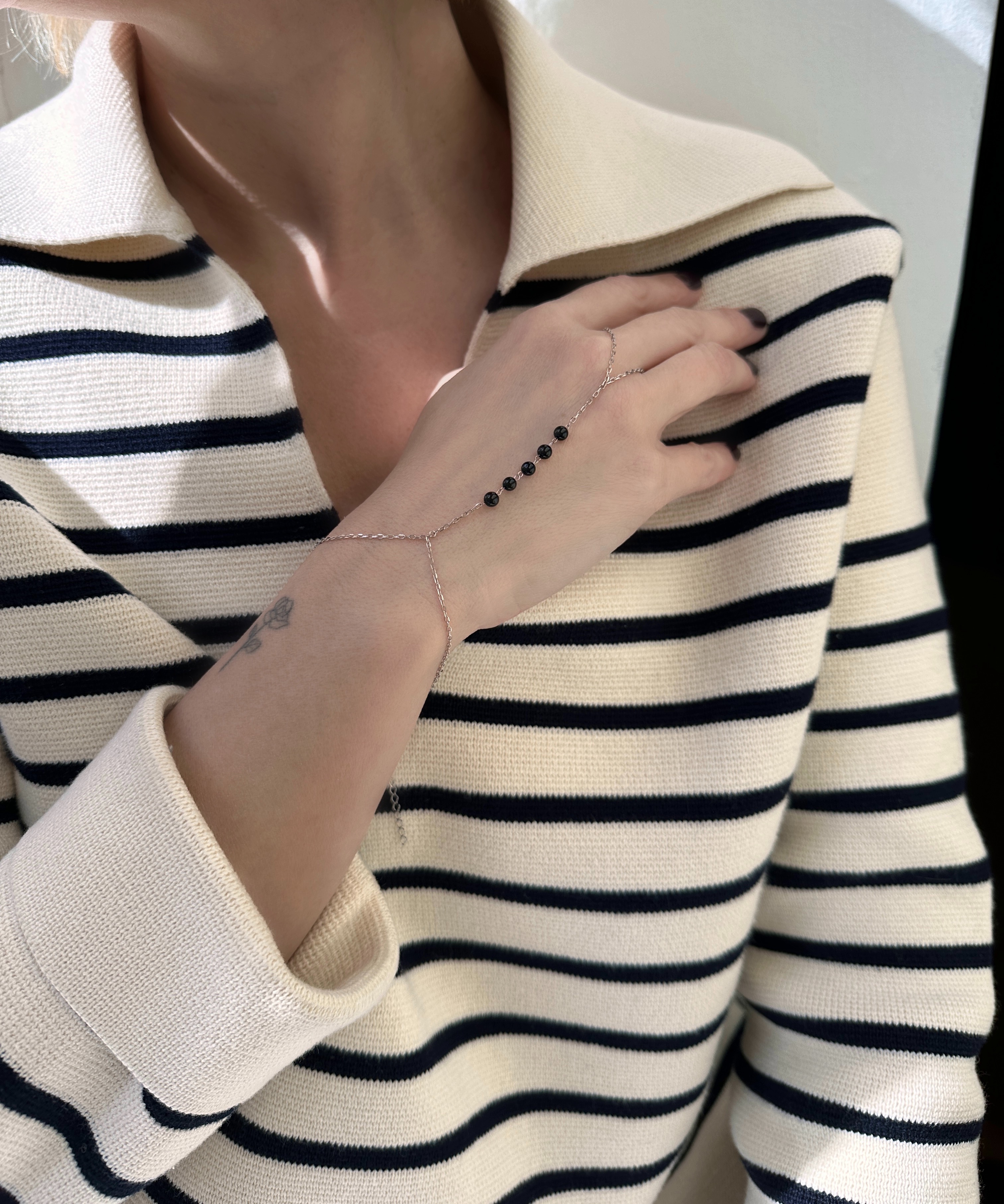 Серебряный браслет 925 пробы, камни - оникс черный