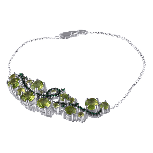 Браслет из серебра 925 пробы с перидотами и фианитами