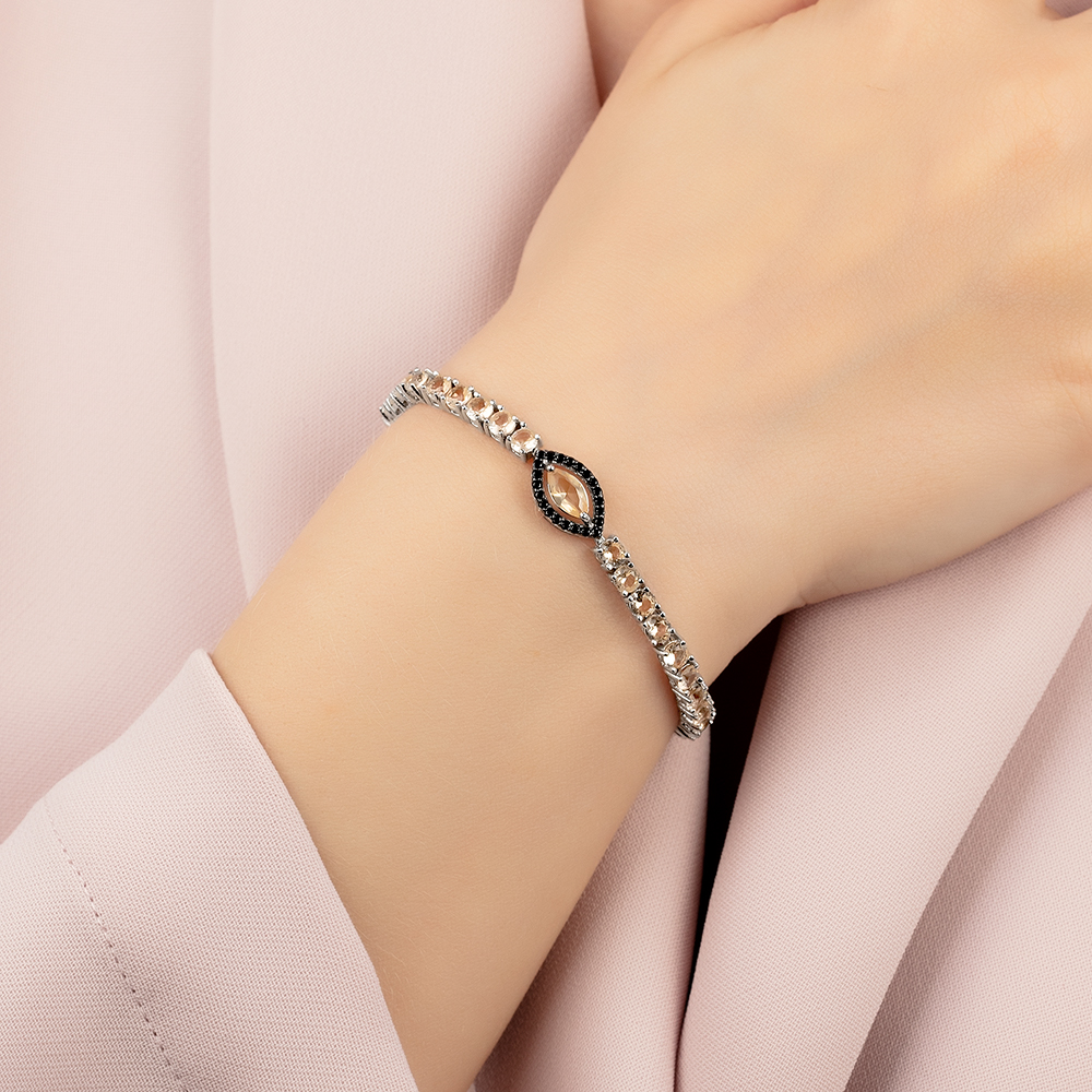 Браслет из серебра 925 пробы с ювелирным стеклом и фианитами