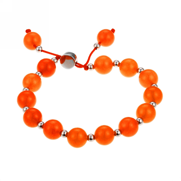 Серебряный браслет 925 пробы, камни - жадеит оранжевый