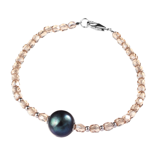 Серебряный браслет 925 пробы, камни - жемчуг черный, ювелирное стекло