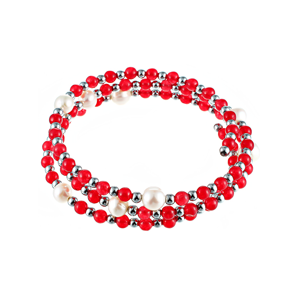 Браслет из стали с агатом, гематитами и жемчугами