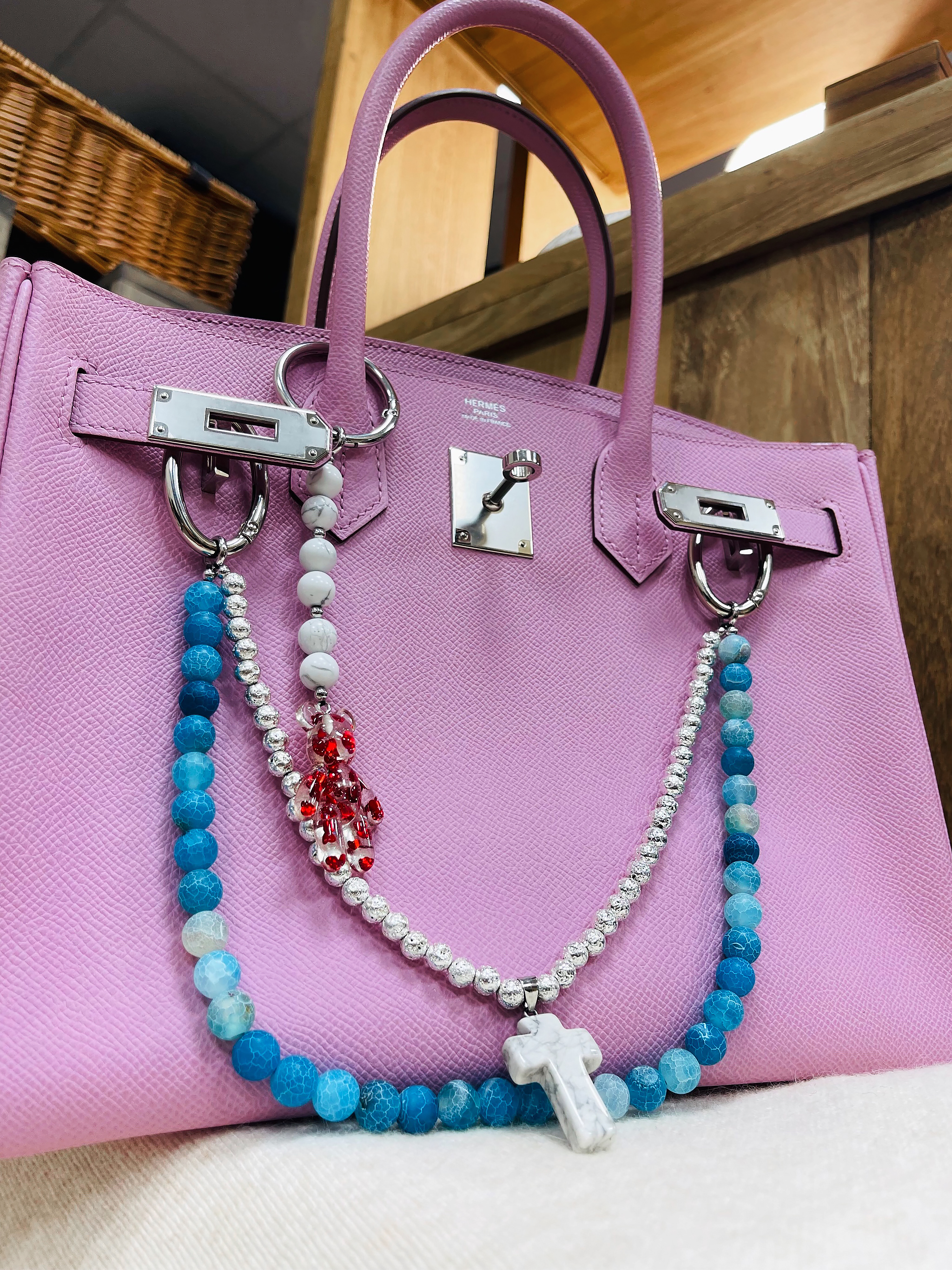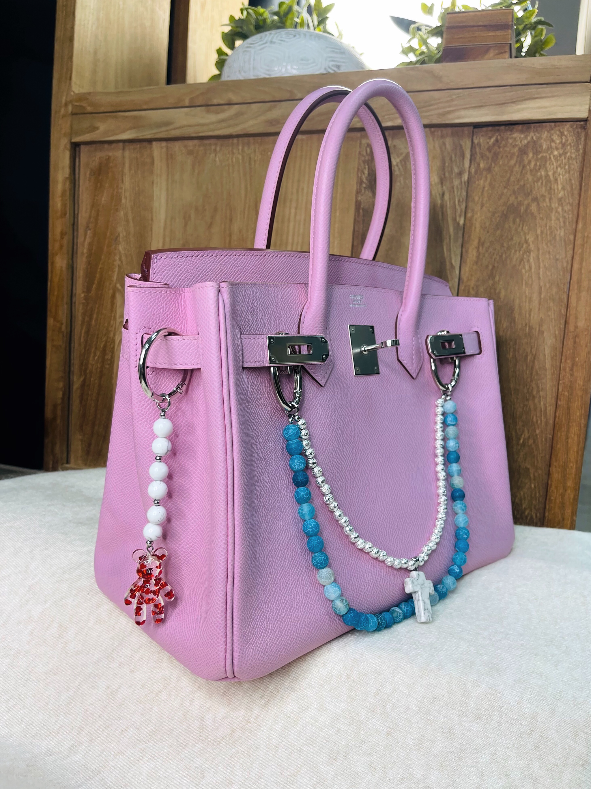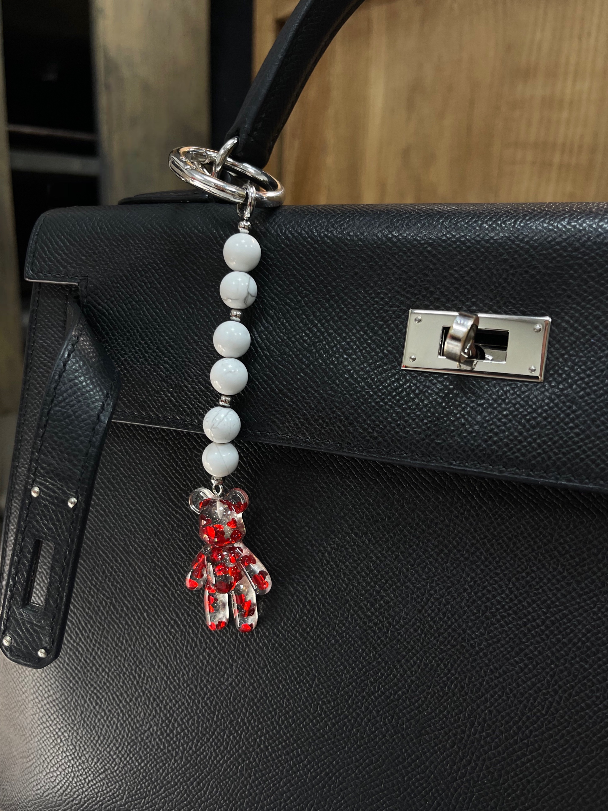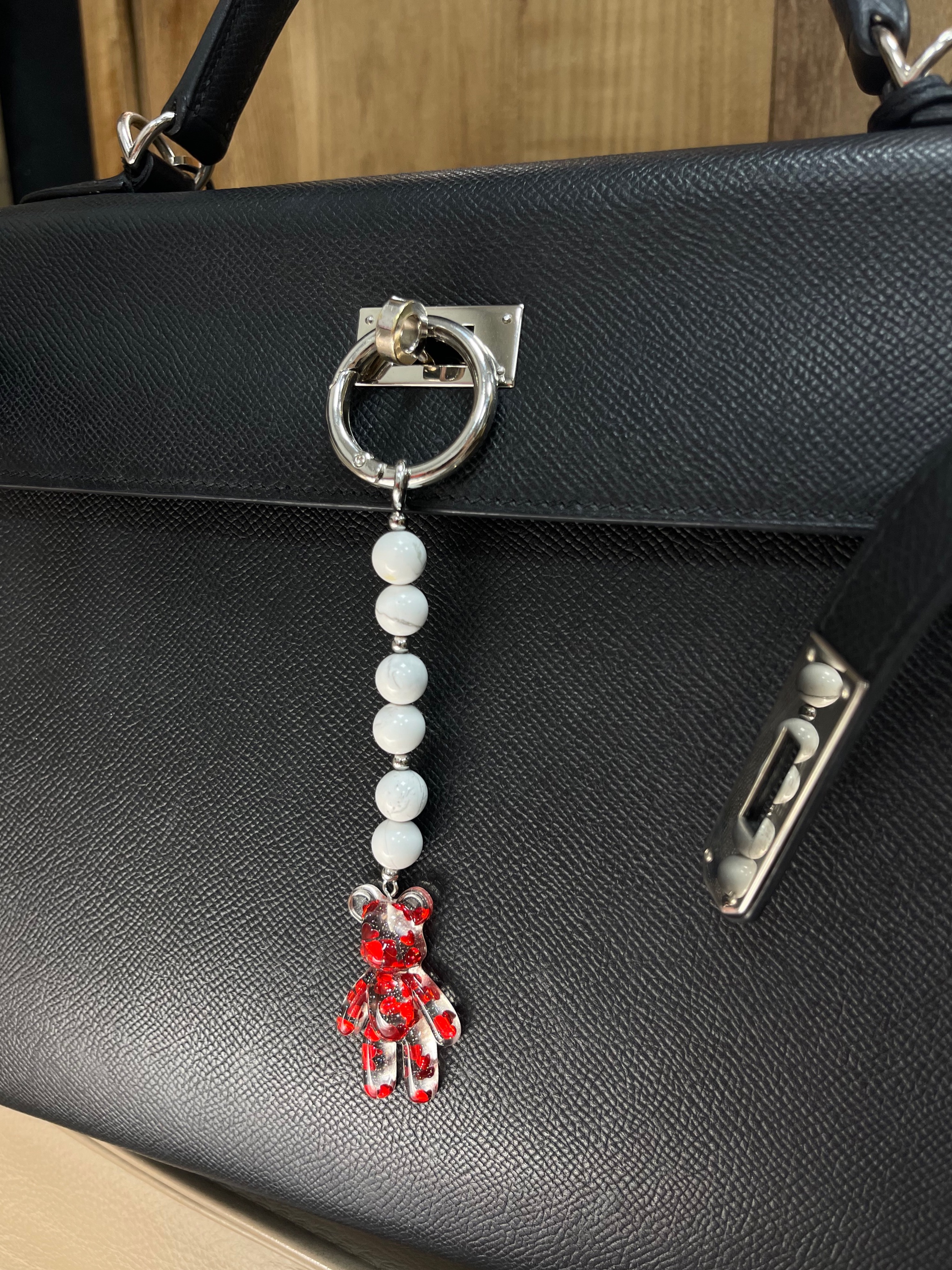 Брелок на сумку с агатом и пластиком.