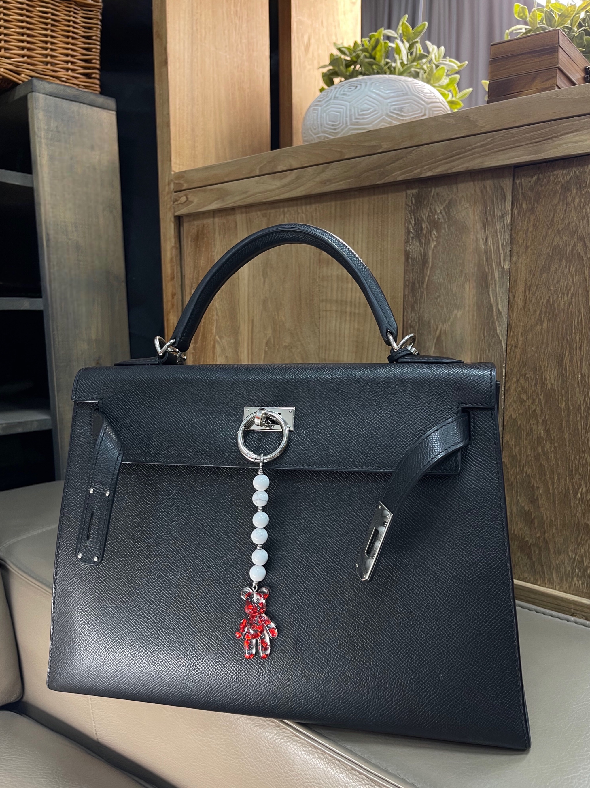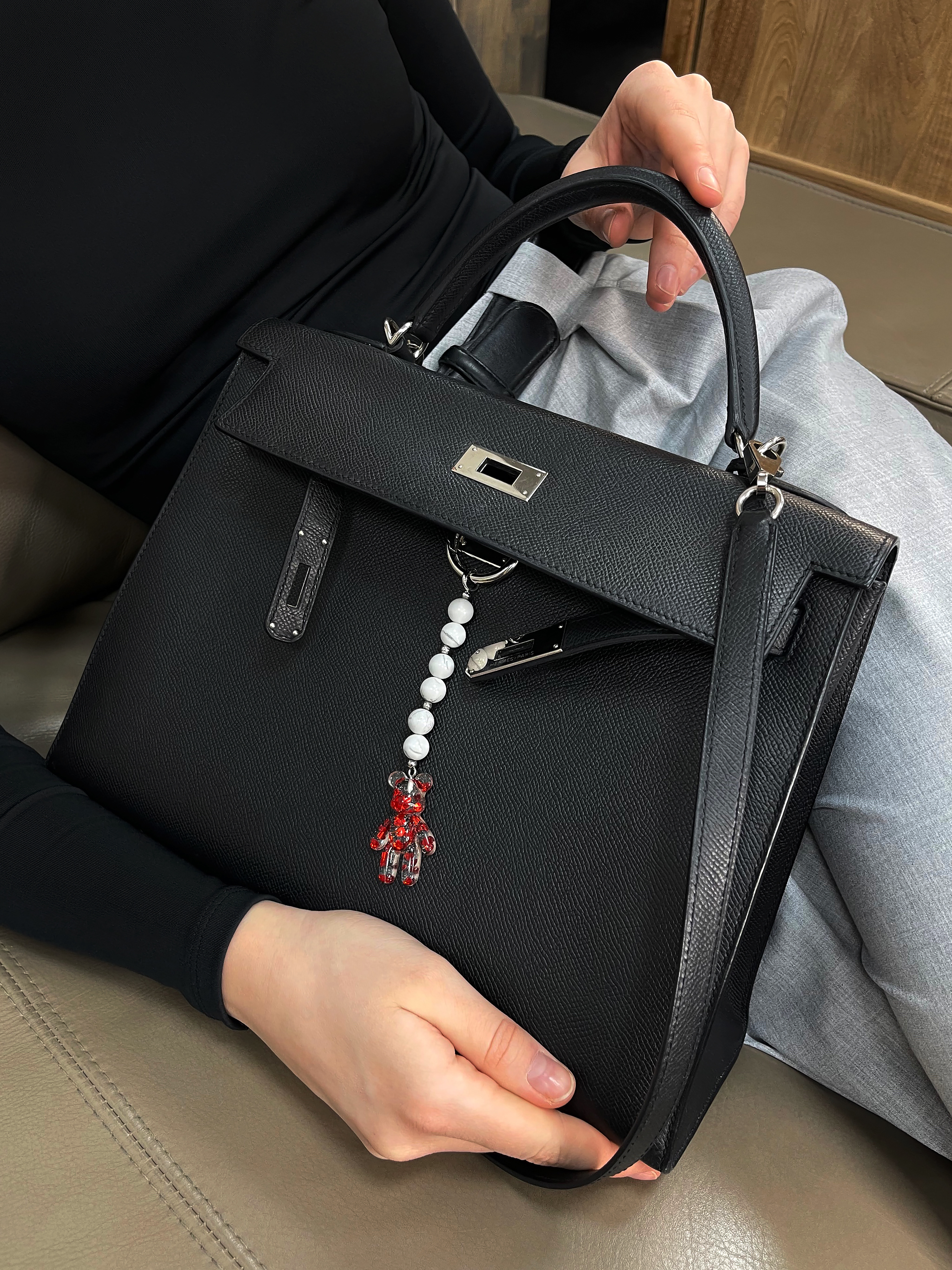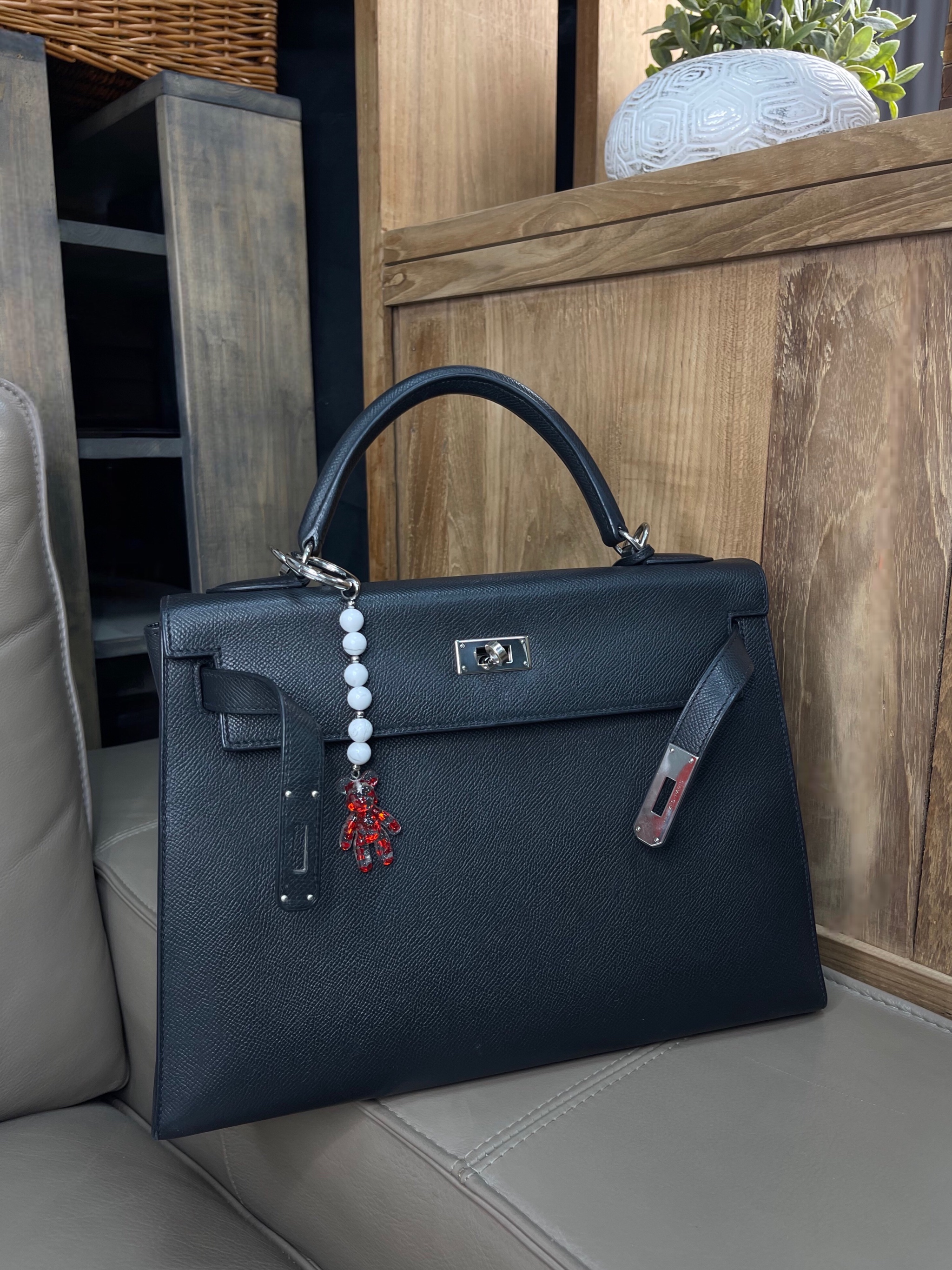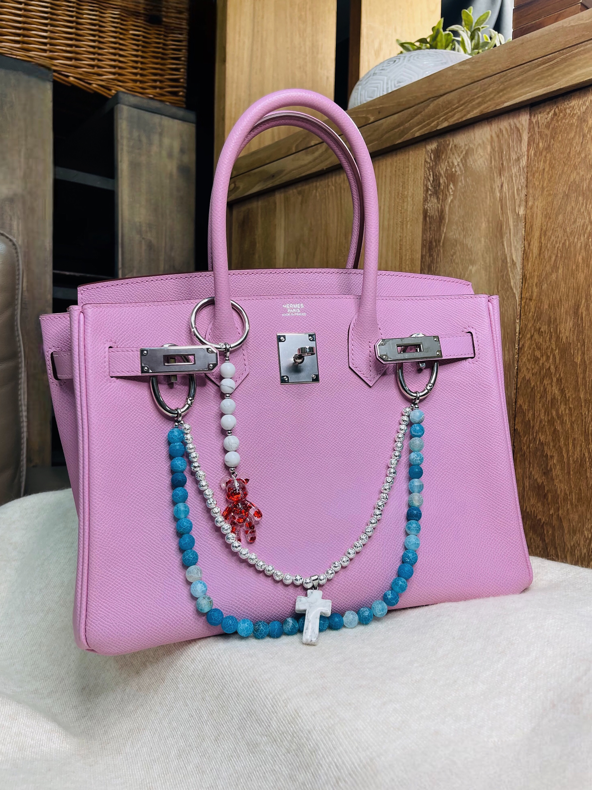 Брелок на сумку с агатом и пластиком.