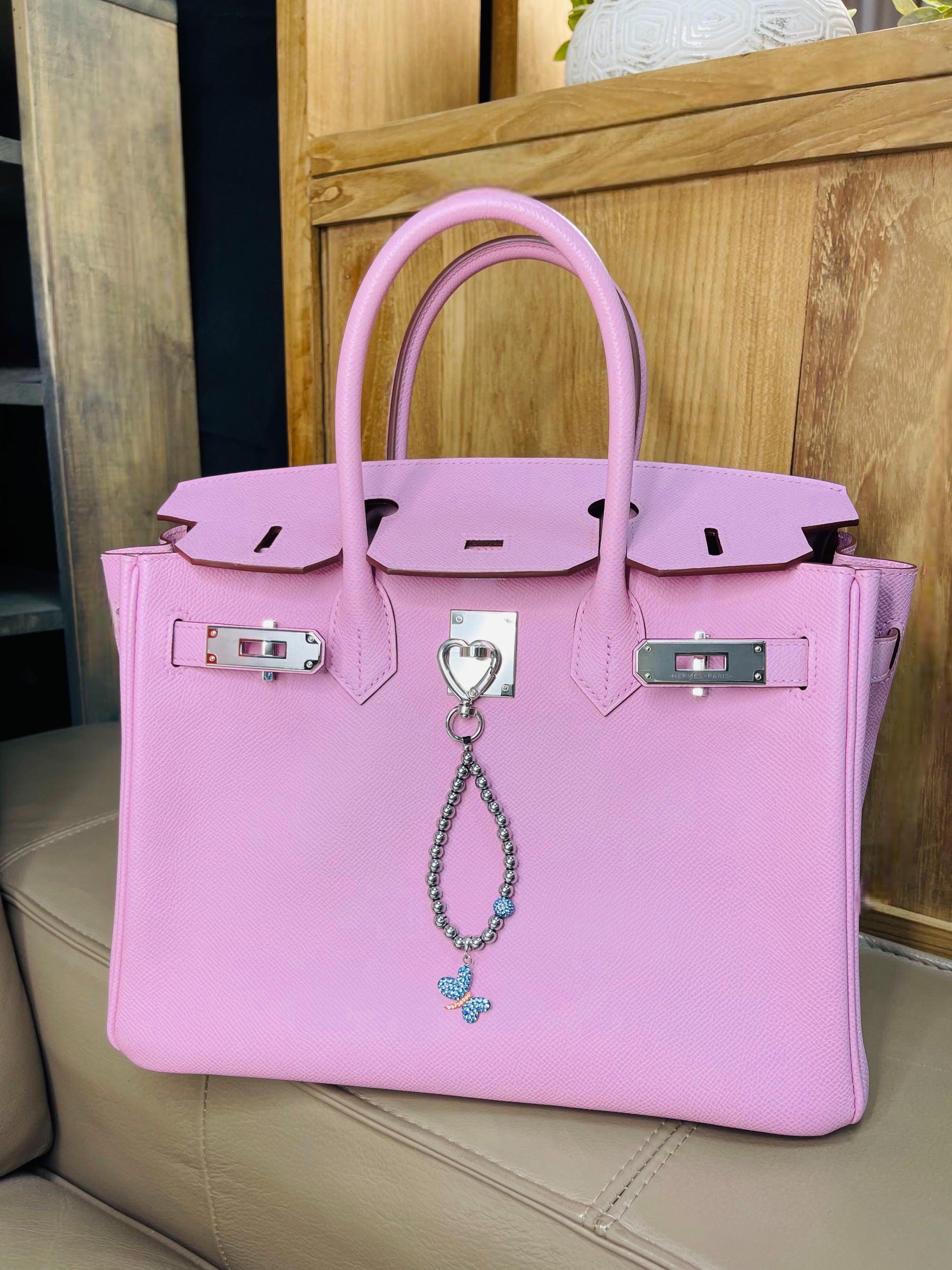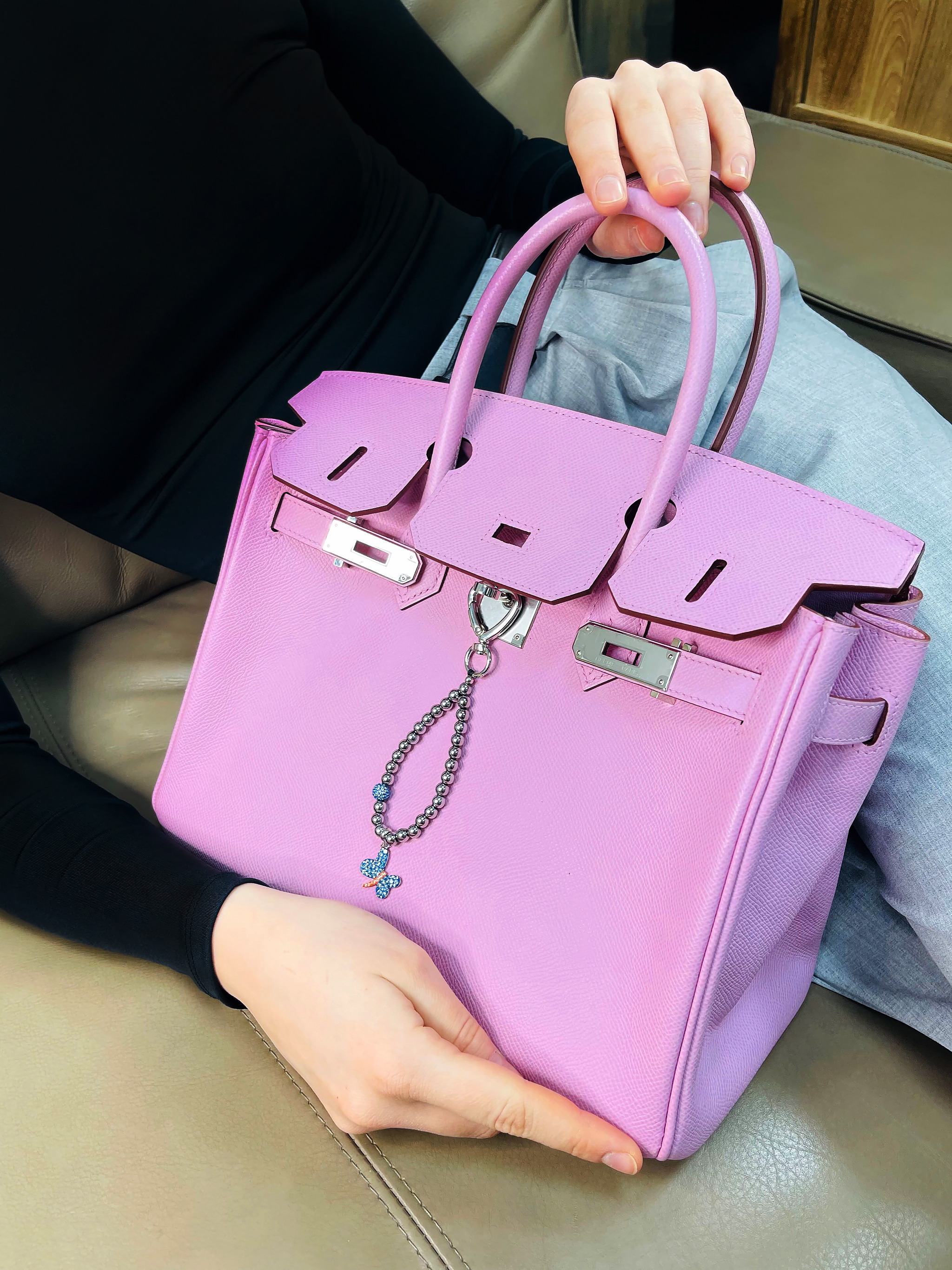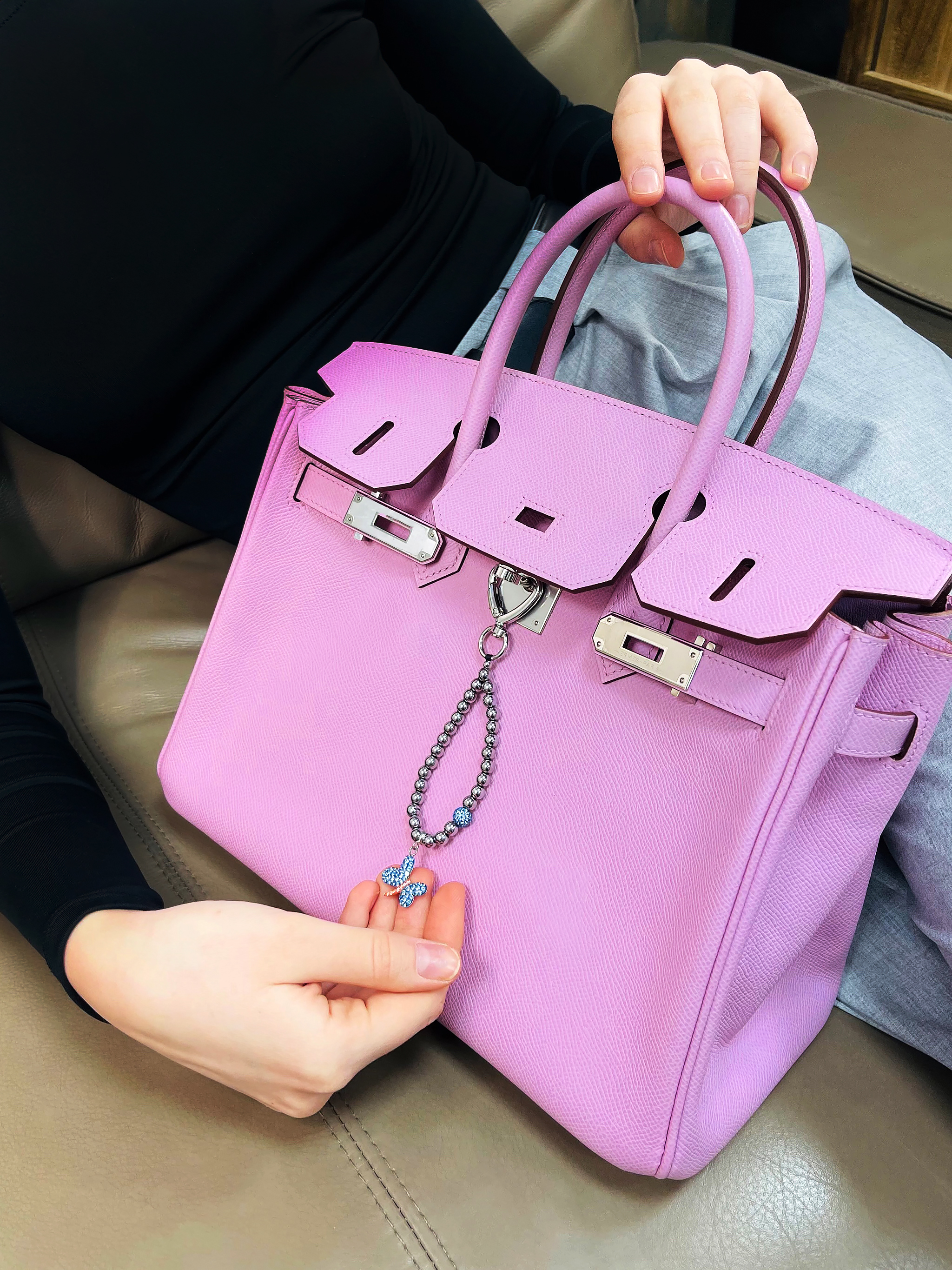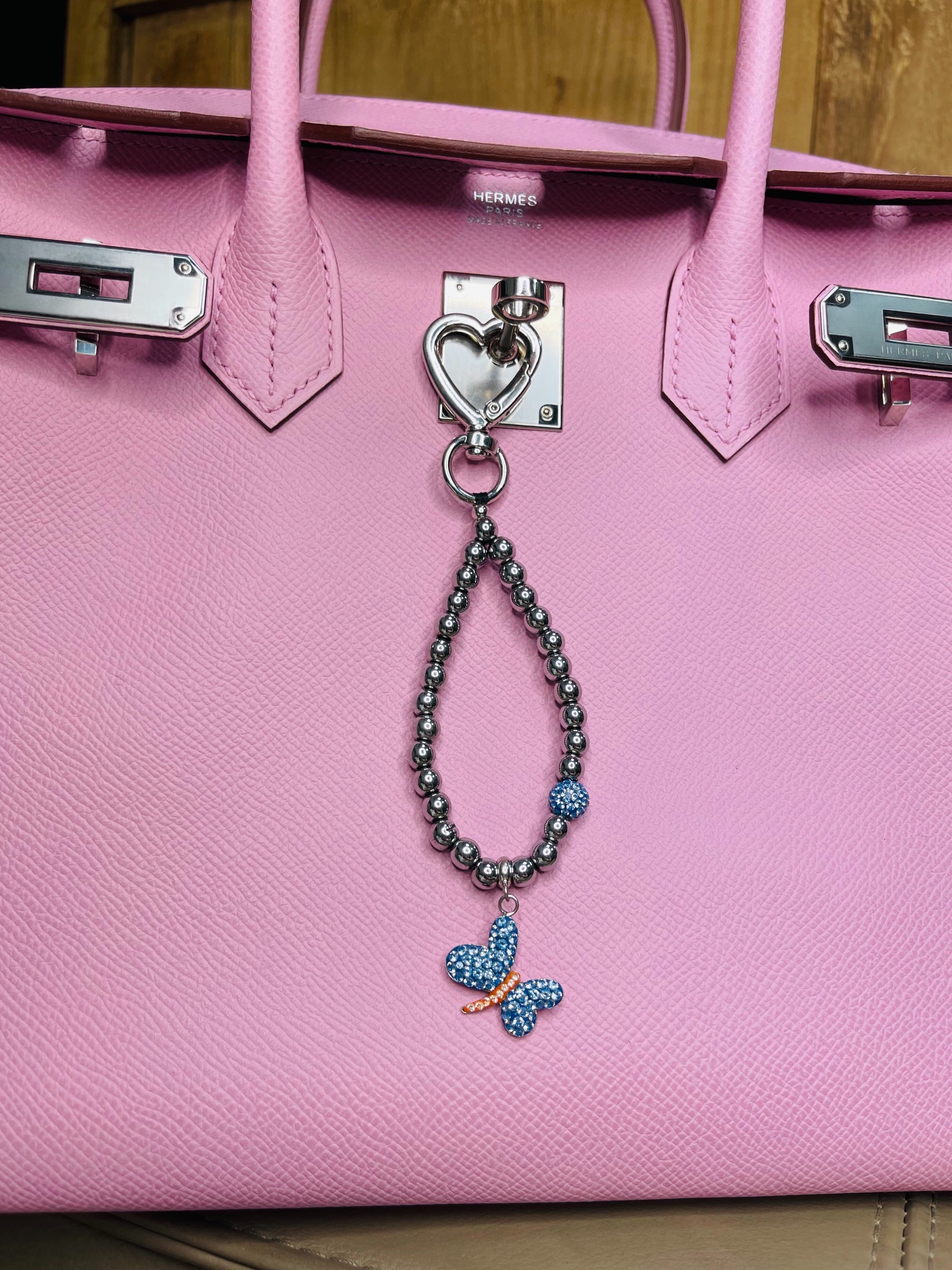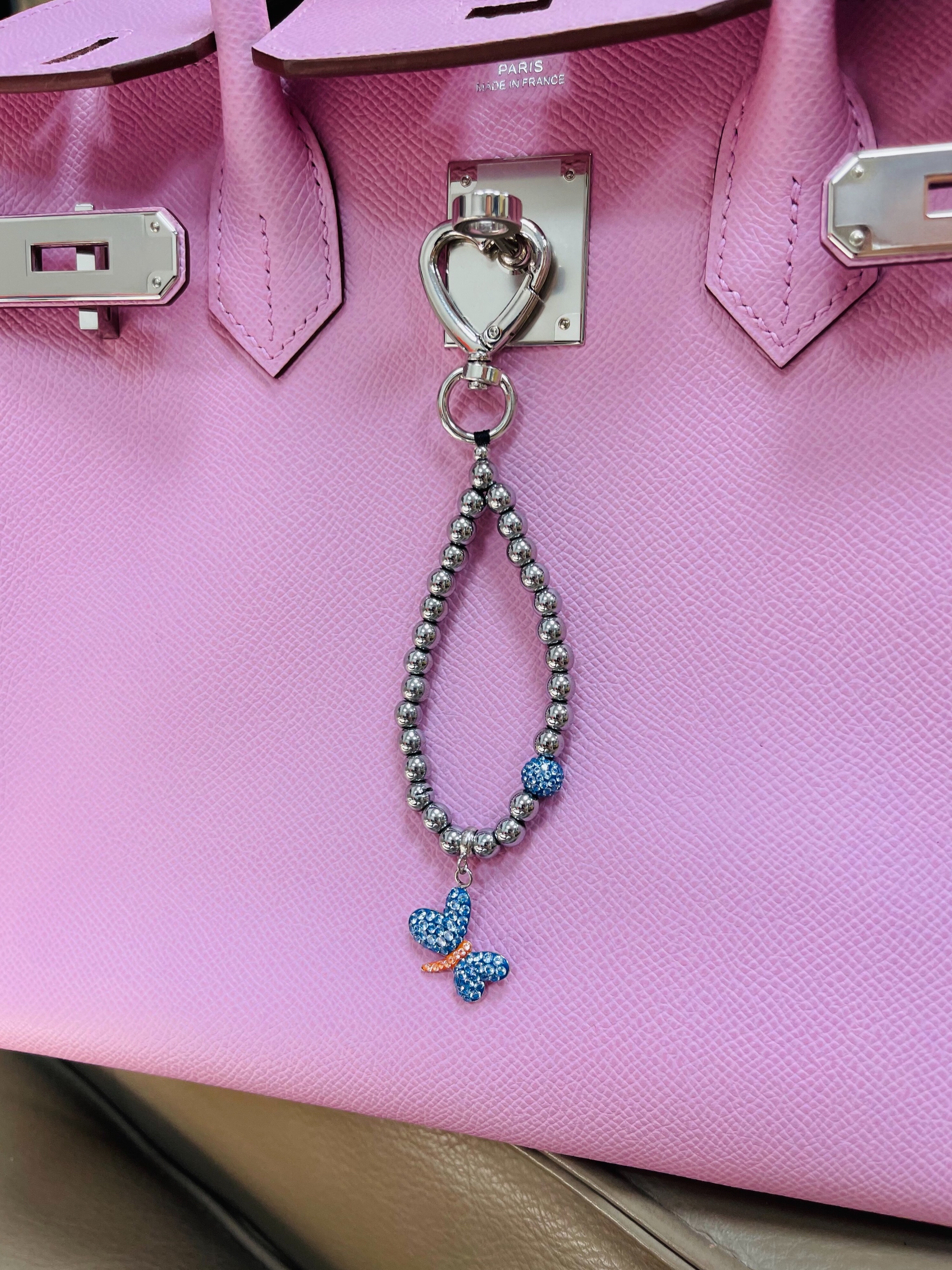 Брелок на сумку с гематитом и фианитами.