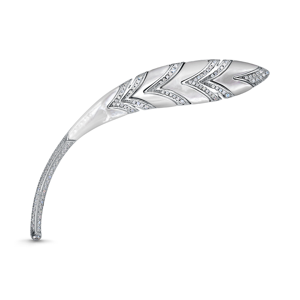 Брошь из серебра 925 пробы с фианитами и перламутром