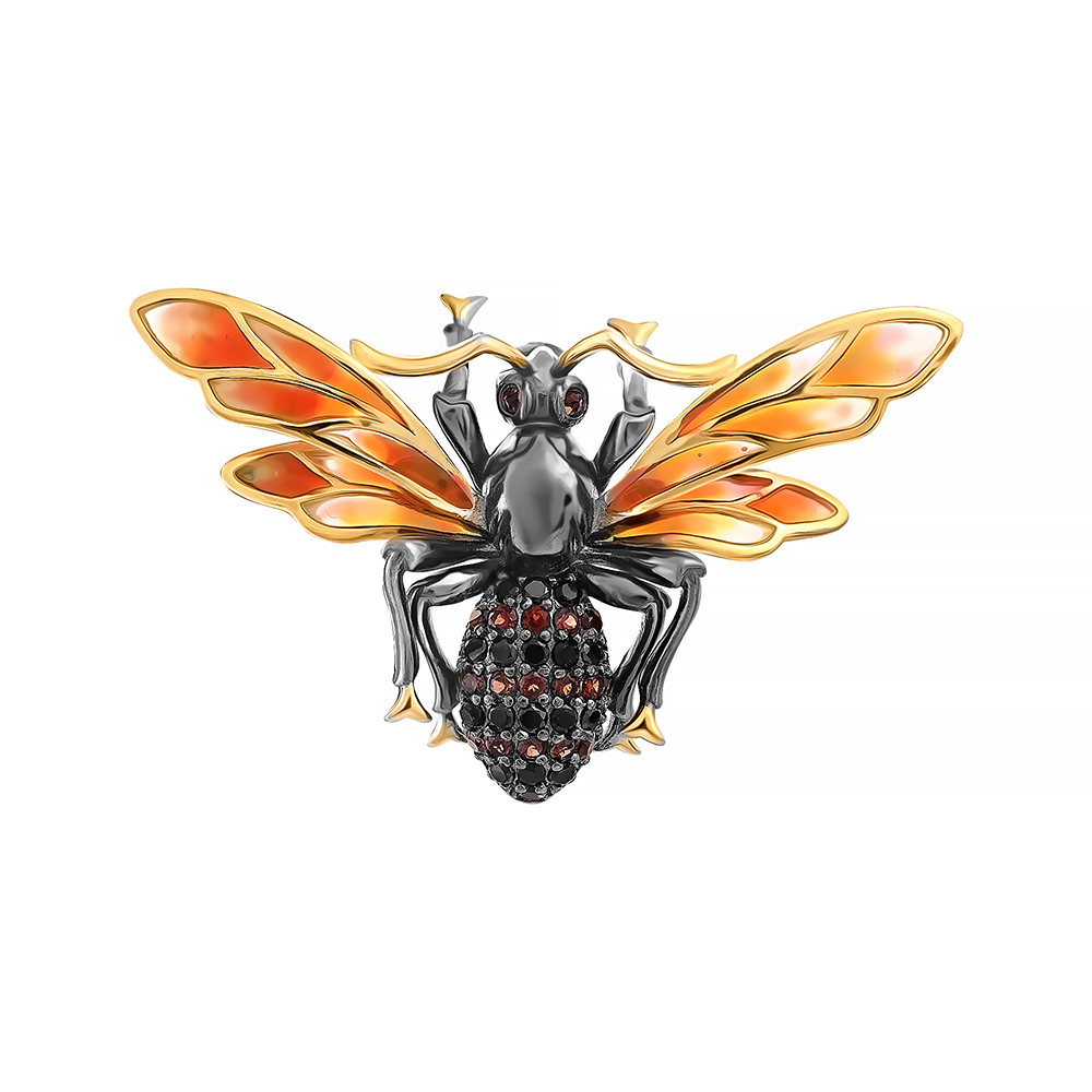 Брошь из серебра 925 пробы с гранатами, шпинелью и эмалью