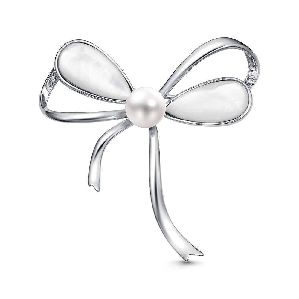 Брошь из серебра 925 пробы с перламутром и жемчугами речными