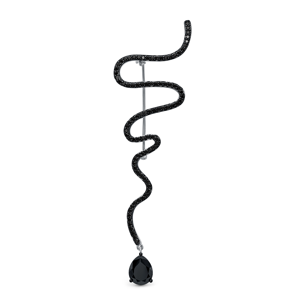 Серебряная брошь 925 пробы, камни - шпинель черный