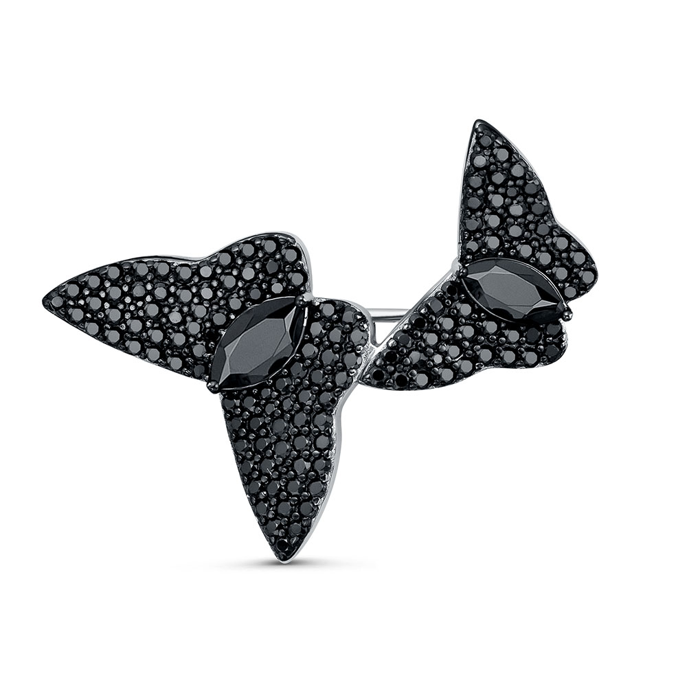 Серебряная брошь 925 пробы, камни - шпинель черный