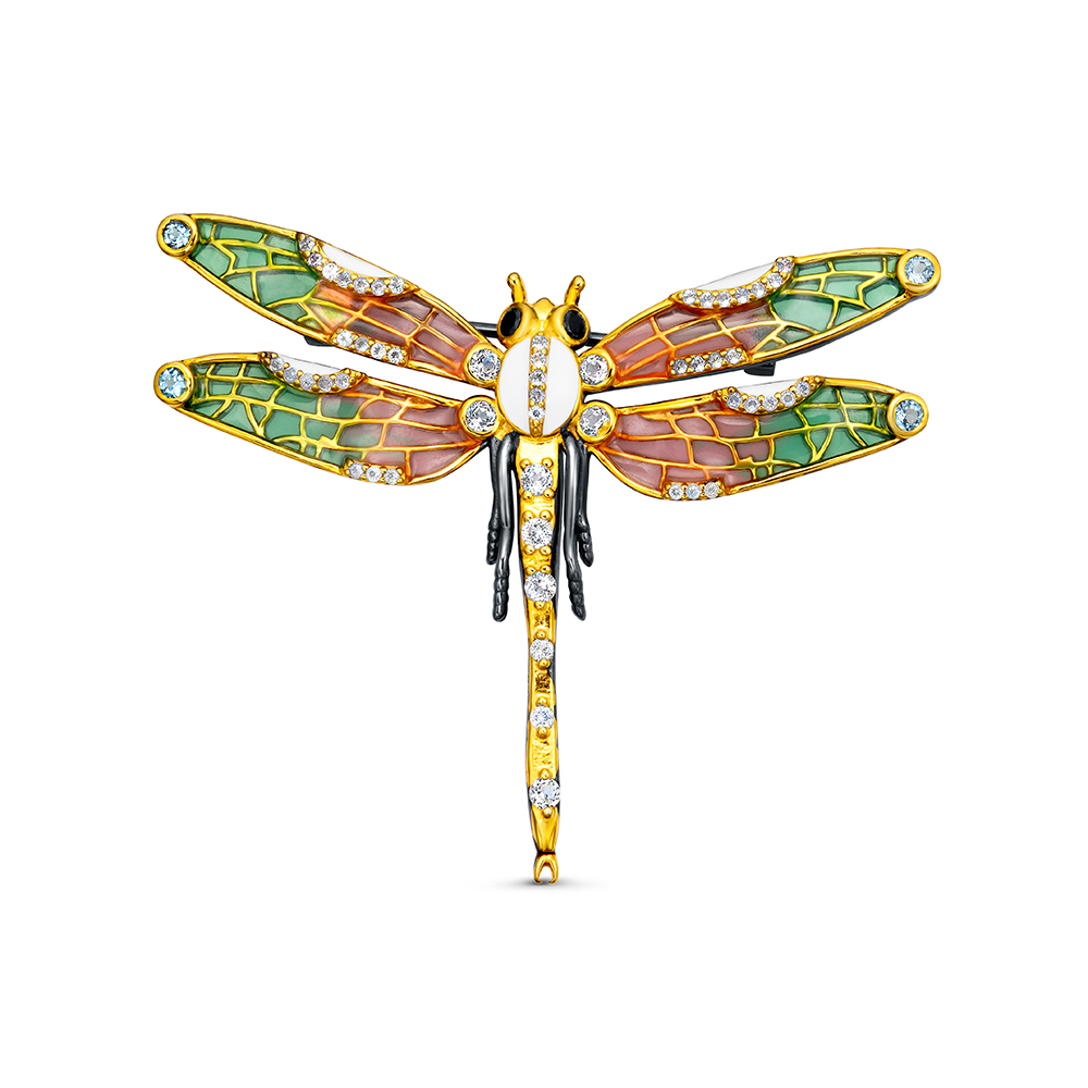 Брошь из серебра 925 пробы с топазами и шпинелью
