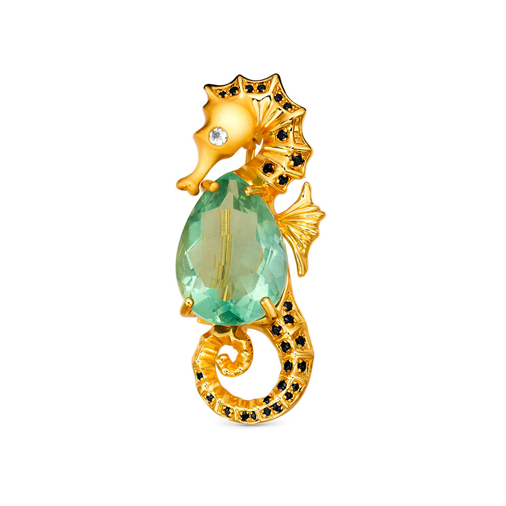 Серебро брошь-подвеска 925 пробы, камни - флюорит зеленый, топаз белый, шпинель черный