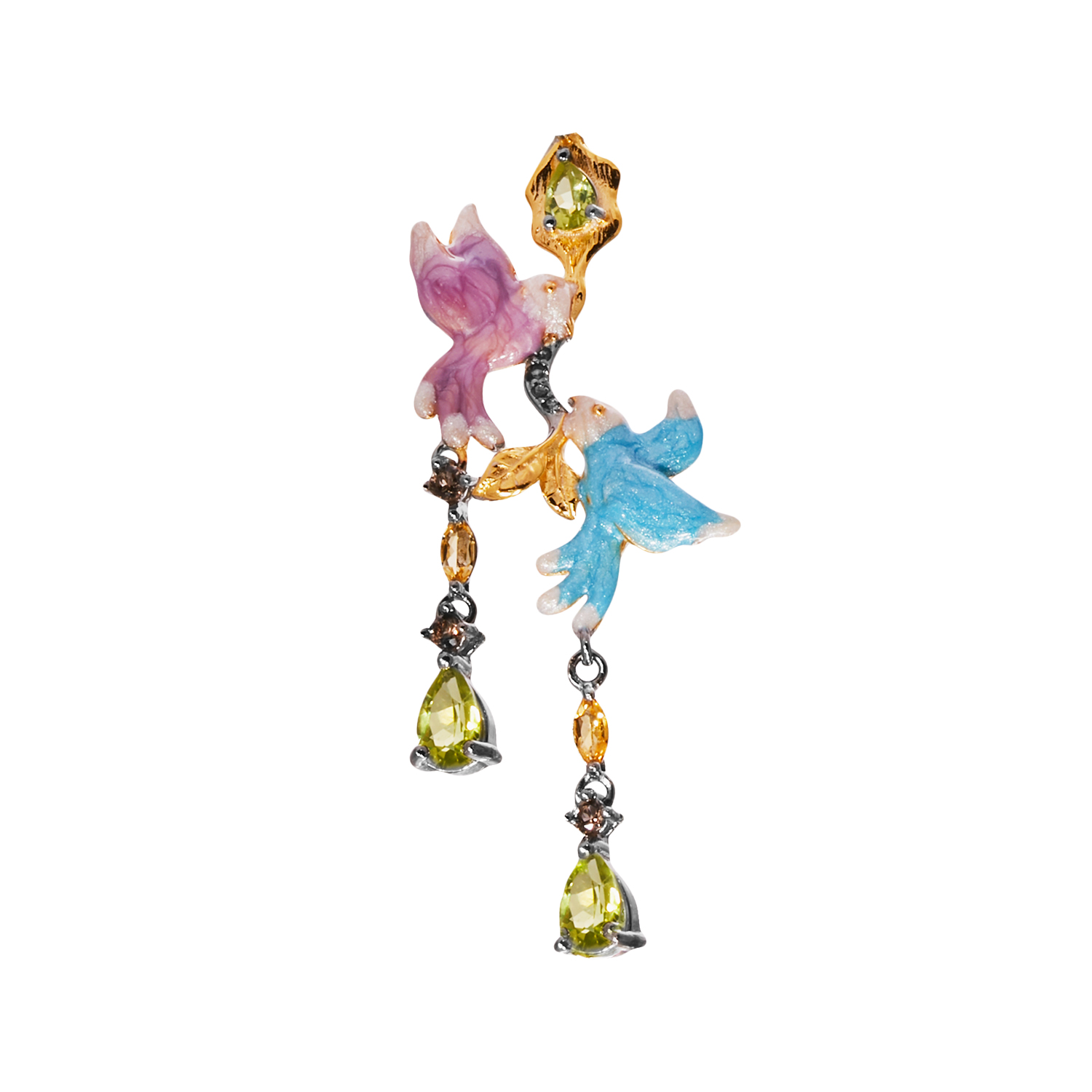 Брошь-подвеска из серебра 925 пробы с перидотами, цитринами, раухтопазами и эмалью