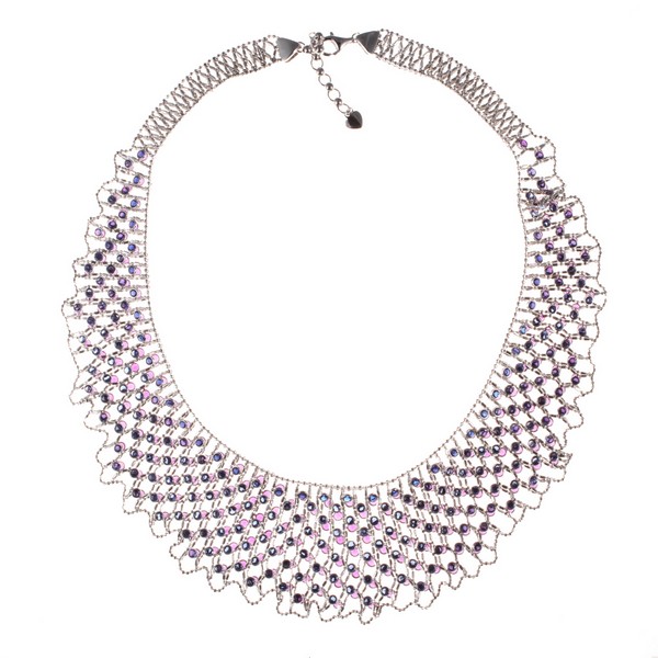 Серебряное колье 925 пробы, камни - фианит цветной