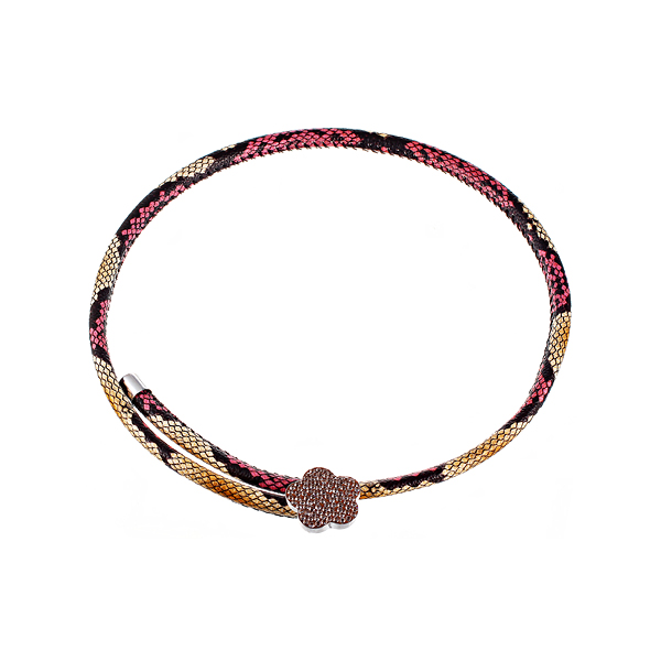 Колье из серебра 925 пробы с фианитами и кожей