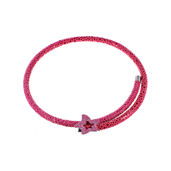 Колье из серебра 925 пробы с фианитами и кожей