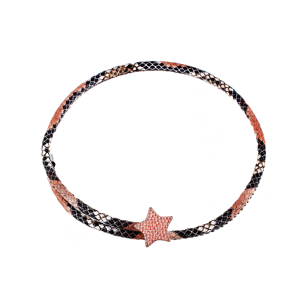 Серебряное колье 925 пробы, камни - фианит, кожа