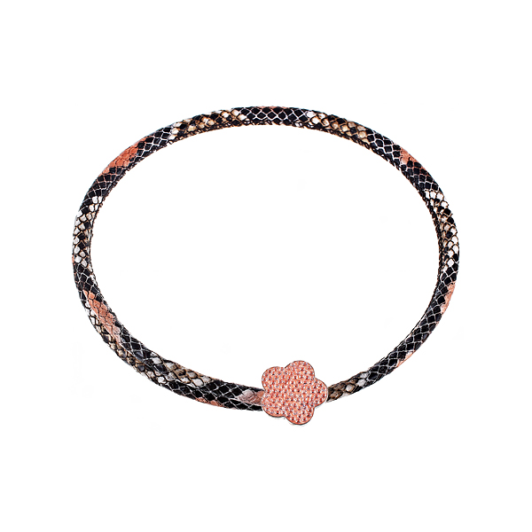 Колье из серебра 925 пробы с фианитами и кожей