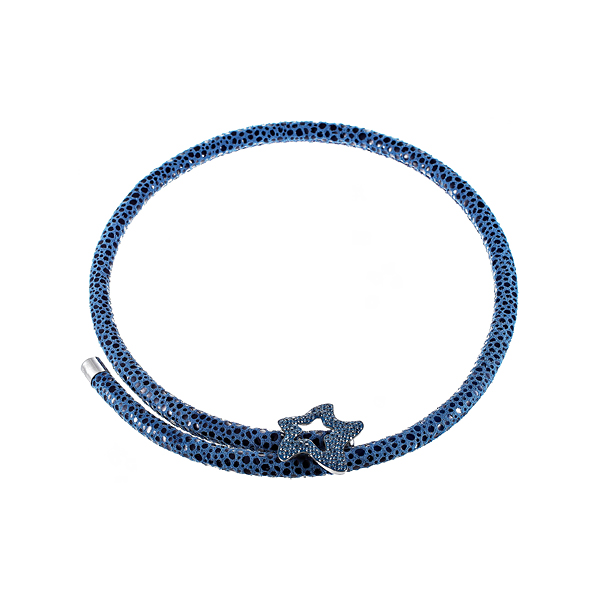 Колье из серебра 925 пробы с фианитами и кожей