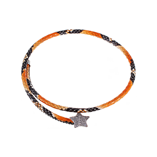 Колье из серебра 925 пробы с фианитами и кожей