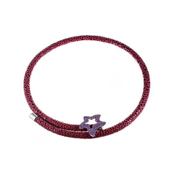 Серебряное колье 925 пробы, камни - фианит, кожа