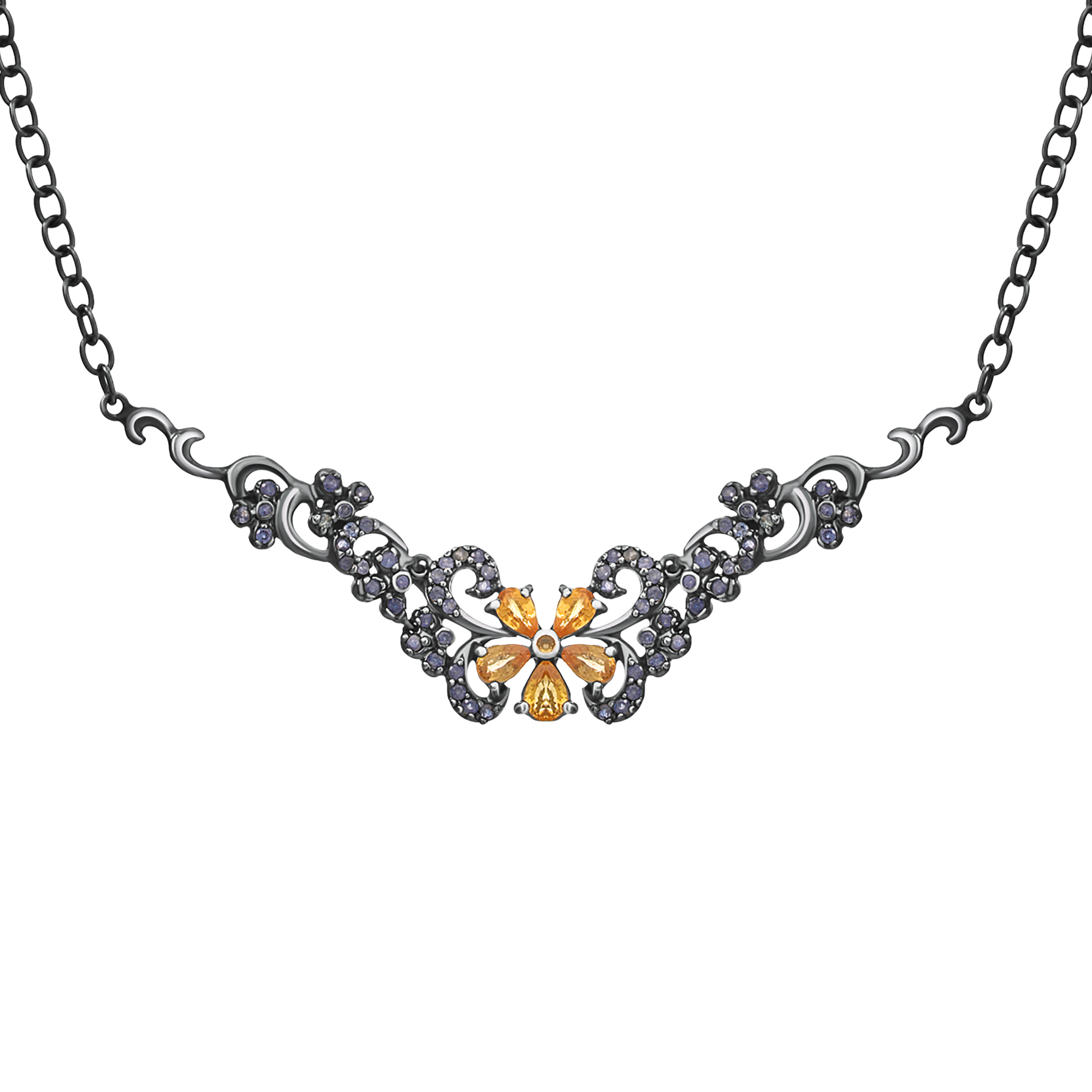 Колье из серебра 925 пробы с кварцем и сапфирами
