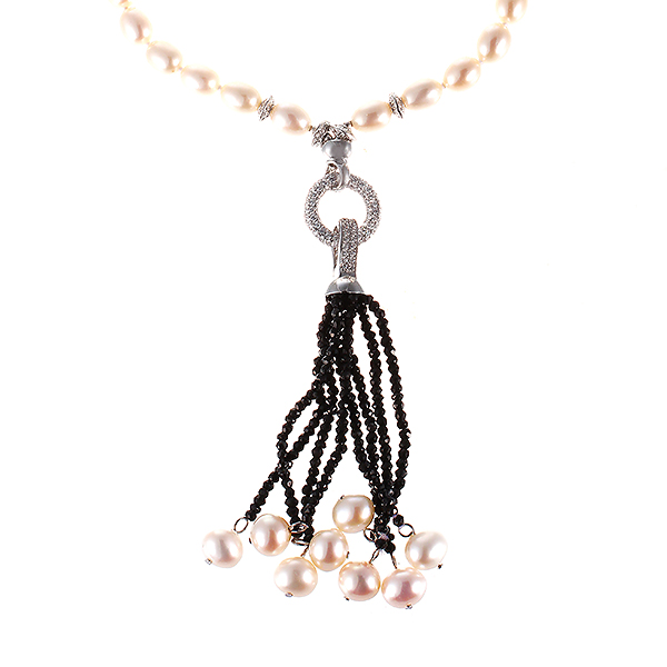 Колье из серебра 925 пробы с ониксом, жемчугами и фианитами