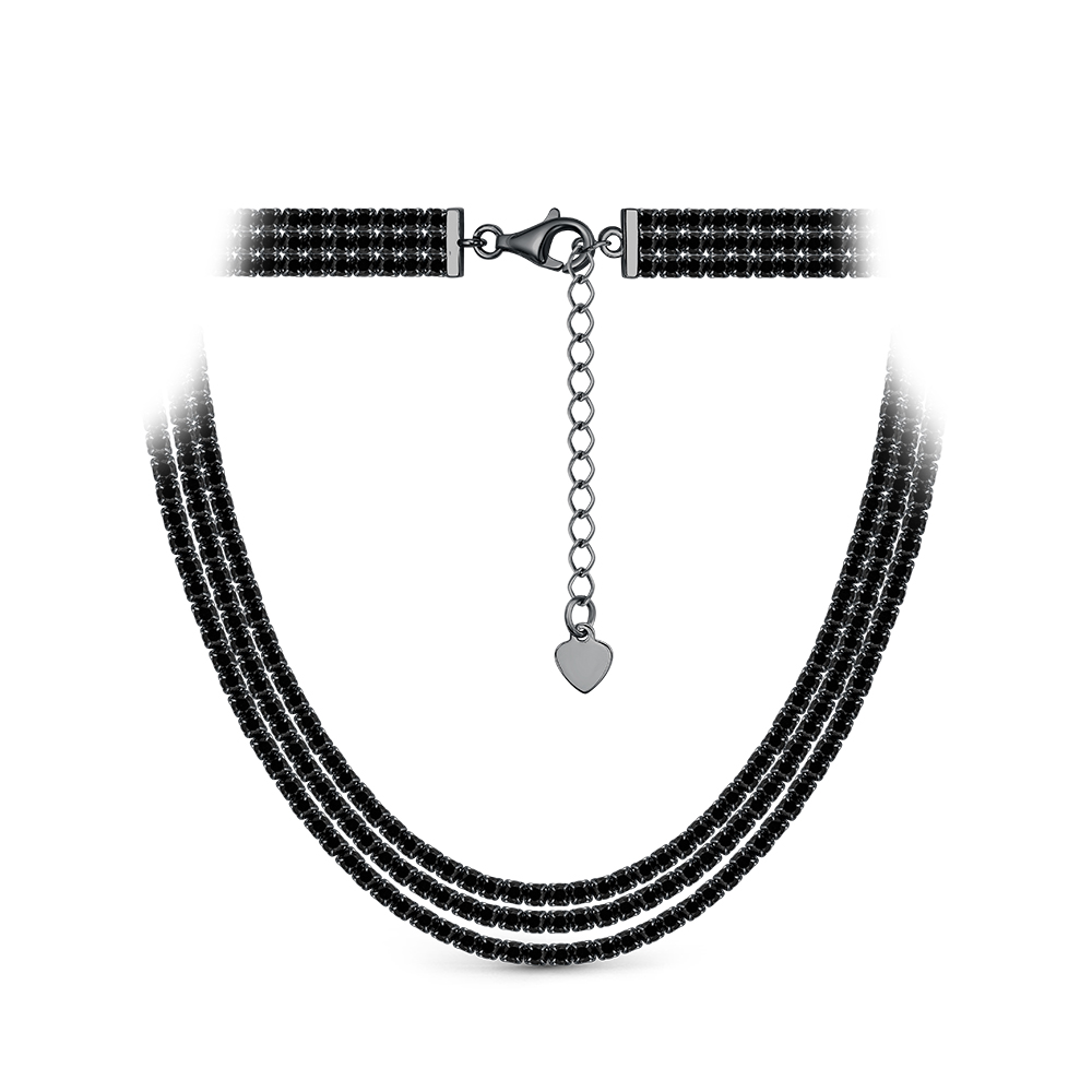 Серебряное колье 925 пробы, камни - шпинель черный