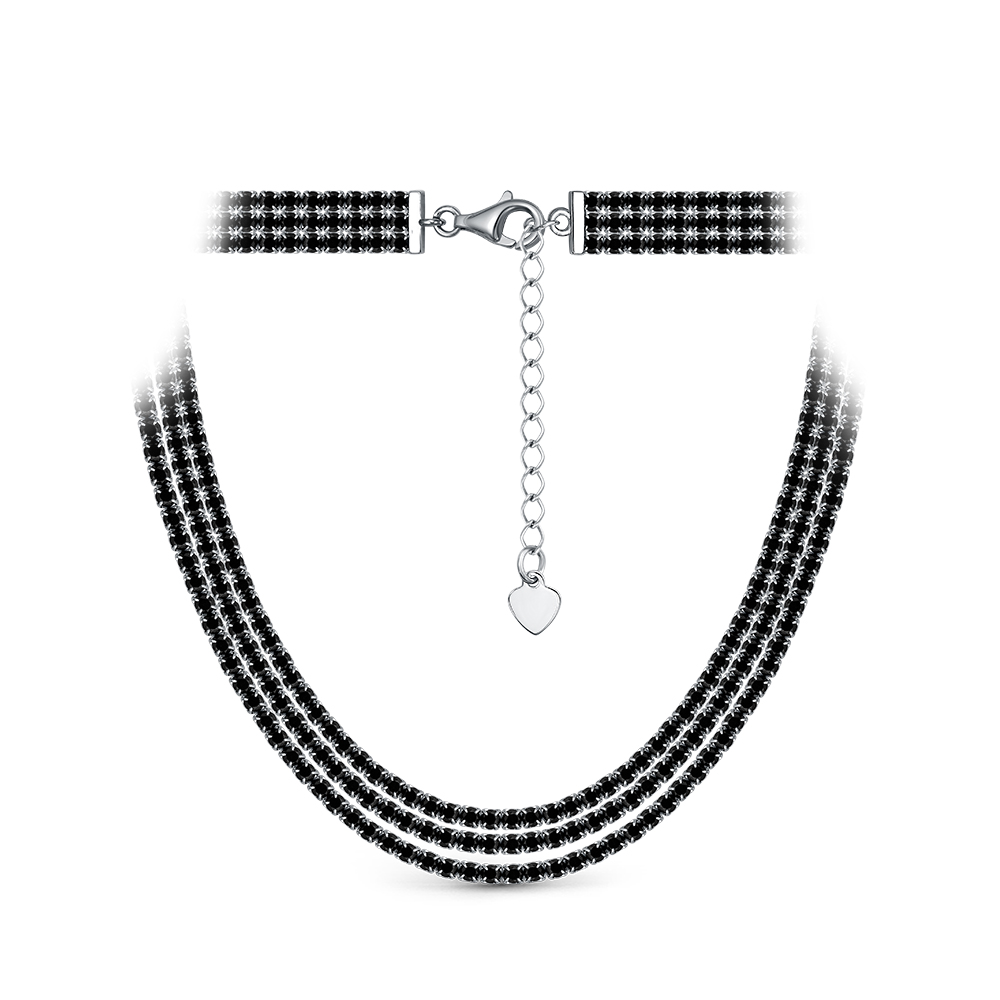 Серебряное колье 925 пробы, камни - шпинель черный