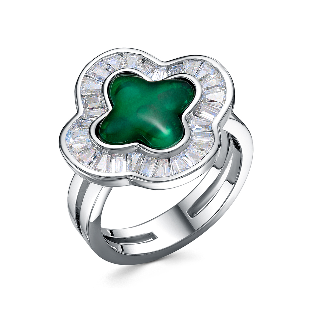 Кольцо из серебра 925 пробы с агатом и фианитами