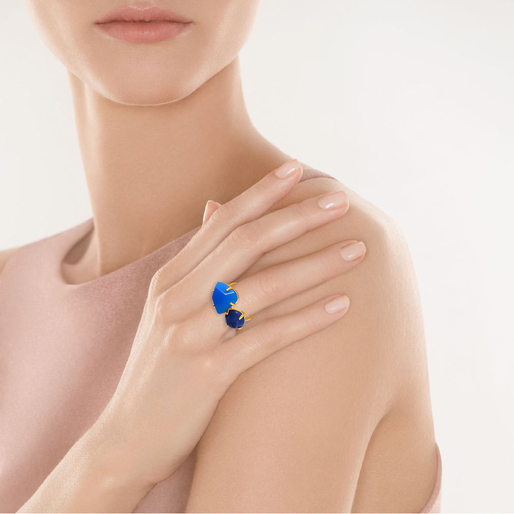 Кольцо из серебра 925 пробы с агатом и содалитами