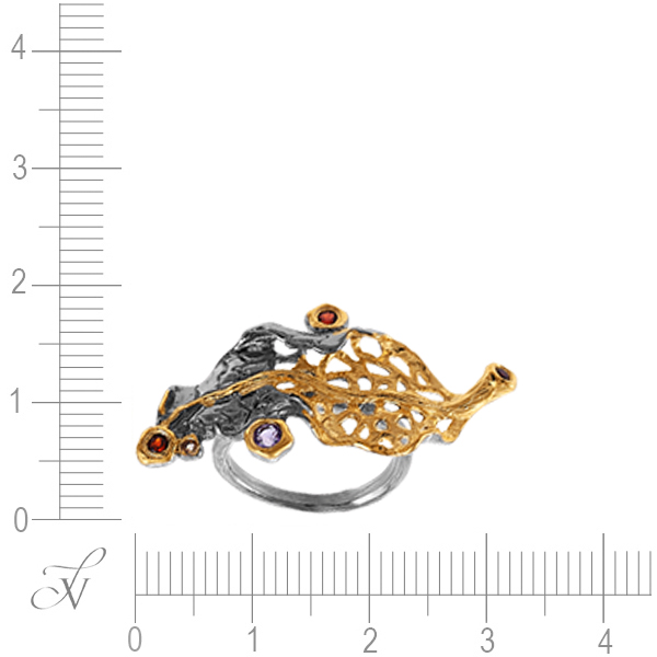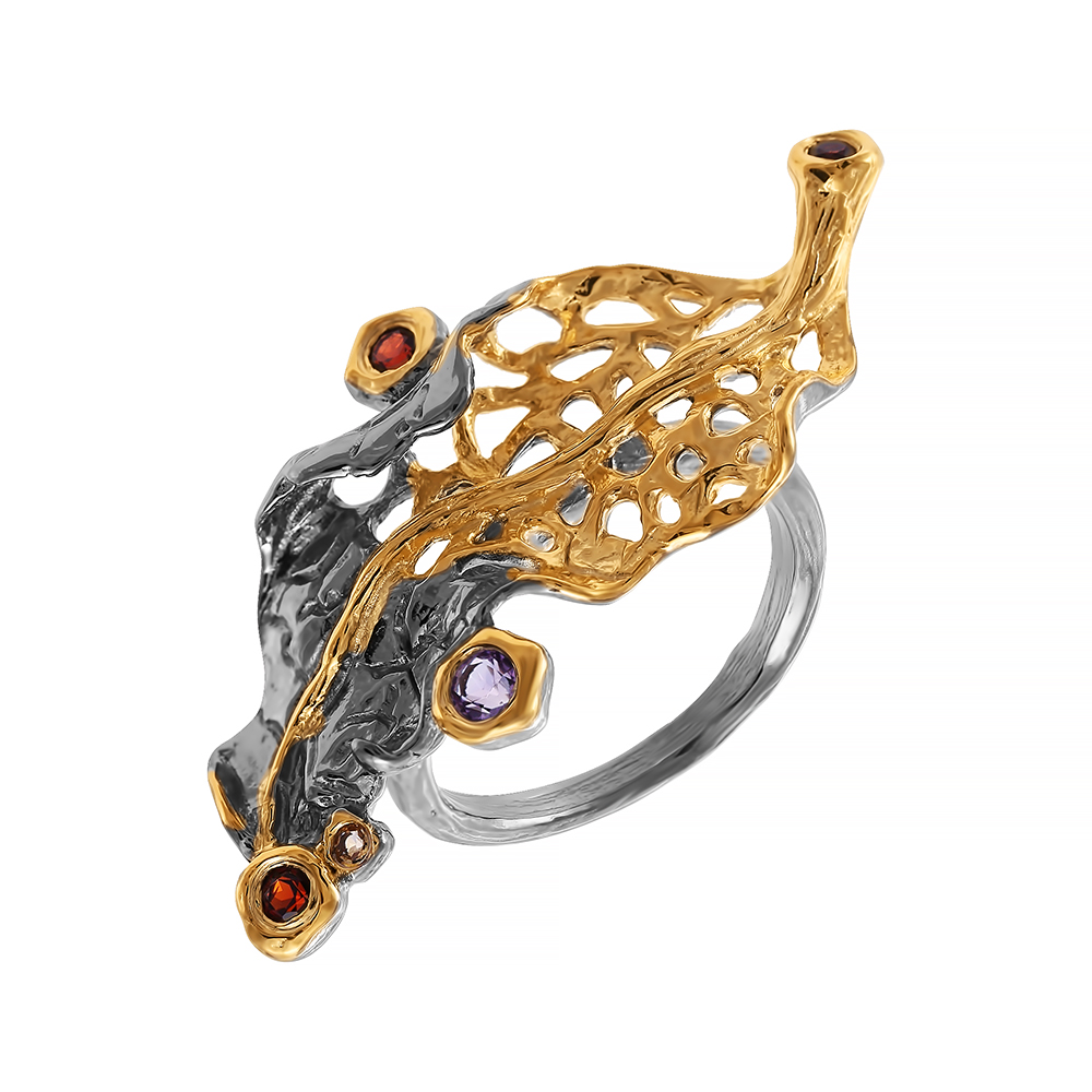 Кольцо из серебра 925 пробы с аметистами, гранатами и цитринами