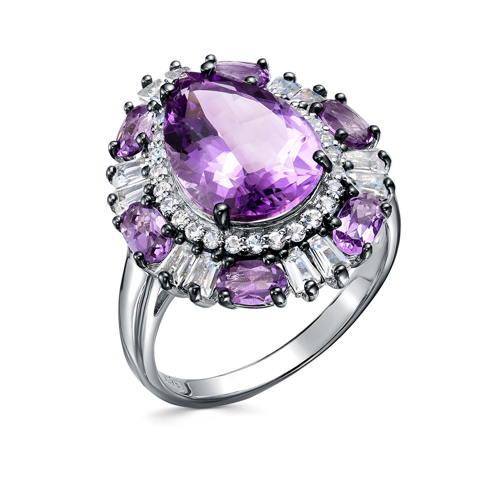 Кольцо из серебра 925 пробы с аметистами и топазами