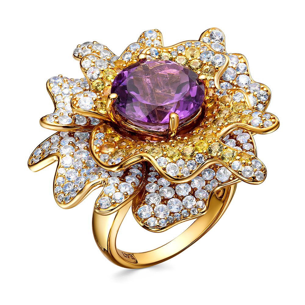 Кольцо из серебра 925 пробы с аметистами, сапфирами и фианитами