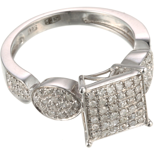 Серебряное кольцо 925 пробы, камни - бриллиант - 78шт. вес 0.50 карата