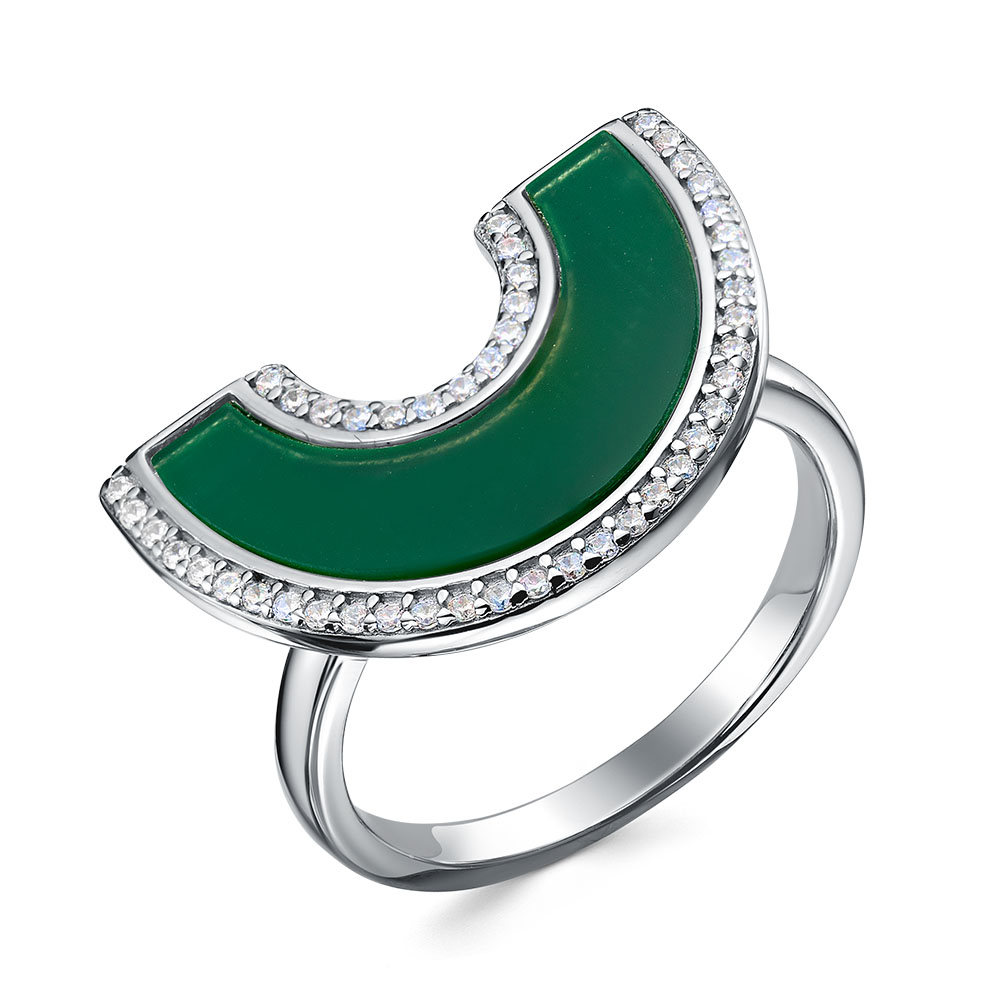 Кольцо из серебра 925 пробы с фианитами и агатом