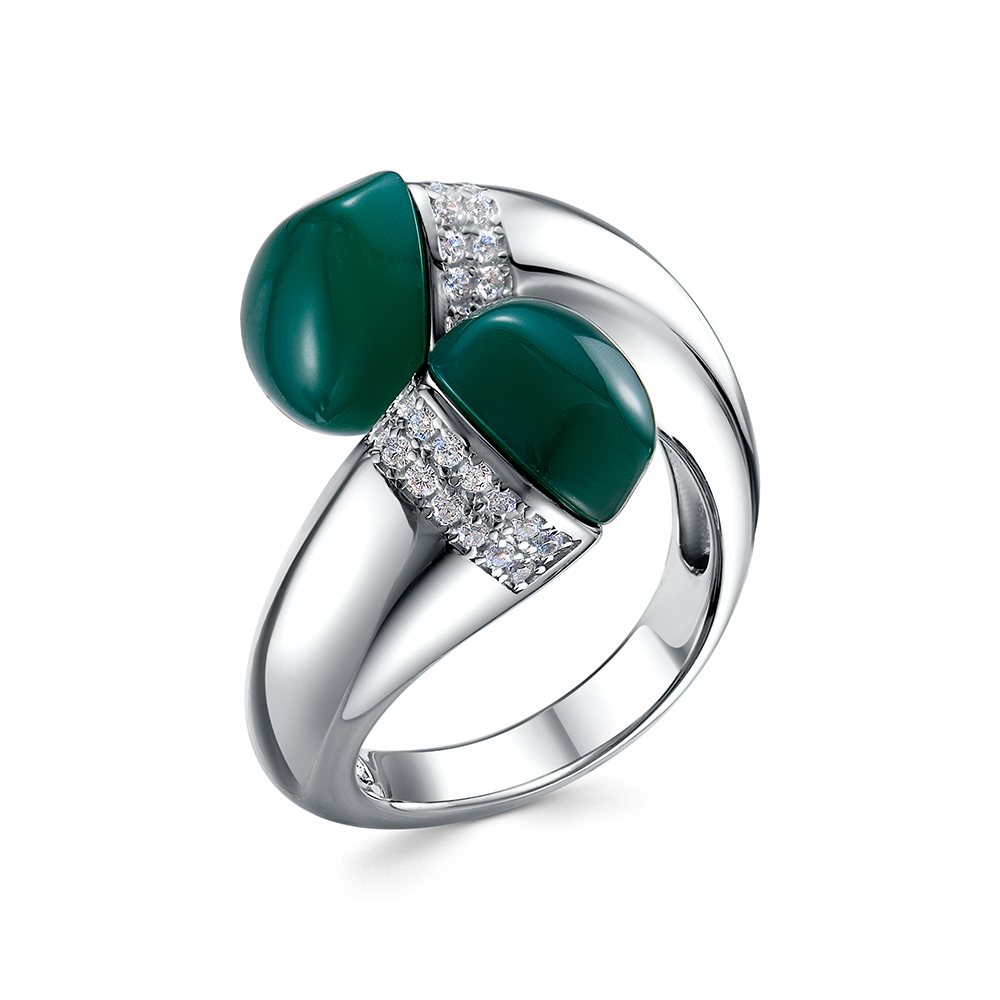 Кольцо из серебра 925 пробы с фианитами и агатом